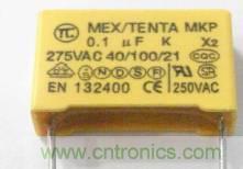 C1: 降壓電容,利用較大的容抗限製電路總電流。常用聚酯電容(CL21)、聚丙烯電容(CBB21)、安規電容(X2) ,容值依負載需求而定,此電容容量越大電路越不安全,在設計此電路時,如果220VAC供電情況下容量超過2.5uF,110VAC供電情況下容量超過4uF就因該放棄阻容降壓考慮其它電路。此處選用0.56uF安規電容(X2),提供19mA電流。