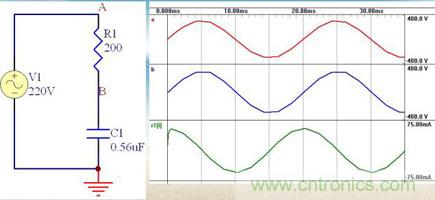 電容器實際上起到一個限製電流和動態分配電容器和負載兩端電壓的角色。
