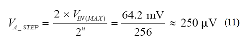 在±25-mV 最大電橋失調範圍內,±32.1-mV 的調整範圍可提供28%的額外調整裕量。對於 8 位 DAC,調整步長為: