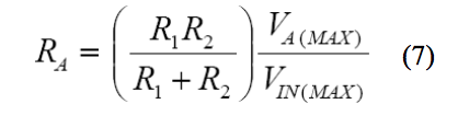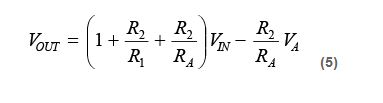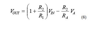 為了找到一個 RA值以允許最大失調調整範圍 VIN(MAX),在給定調整電壓範圍 VA(MAX)的情況下,使 VOUT = 0,求 RA,結果得到