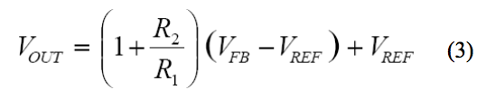 由於輸入之間的電壓等於反饋(FB)與參考(REF)端子之間的電壓時,放大器的反饋要求可得到滿足,因此,我們可將該公式重寫為