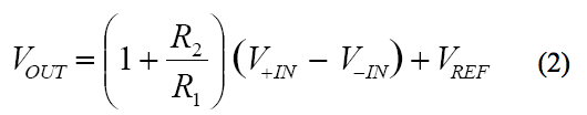 該儀表放大器的傳遞函數在形式上與經典三運放拓撲結構的傳遞函數相同,其計算公式為