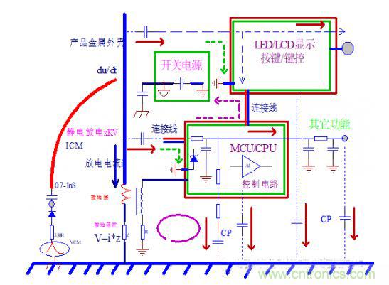 我們要首先排除放電火花直接進入電子產品或設備的情況,幹擾過程相對簡單,我們可以尋找一下放電怎麼會繞過殼體。