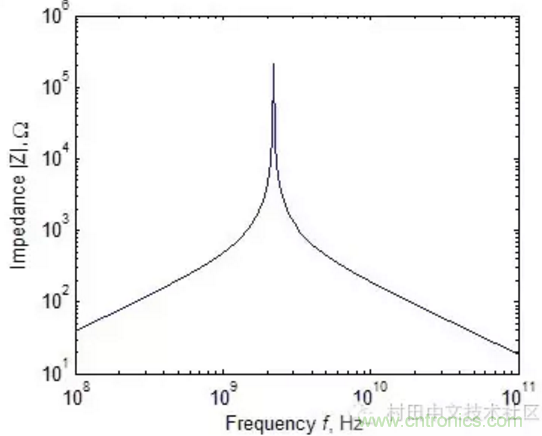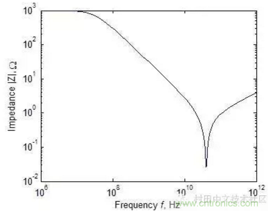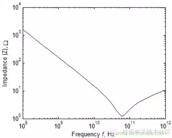 一個典型的1pF電容阻抗絕對值與頻率的關係
