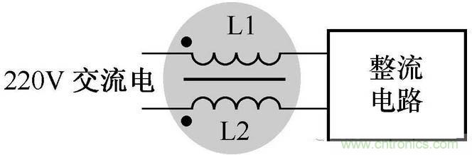 這一抗幹擾電路串聯在交流電回路中。L1、L2不需要接地線,所以安全性能比較好。