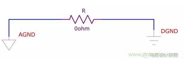 用於信號完整性的模擬地和數字地的單點連接 - 有人說0Ω跟沒有一樣,幹嘛不直接連接上?想象一下如果你在電路原理圖裏沒有這個0Ω的電阻,做PCB Layout的時候就可能忽略這個單點連接的原則,CAD軟(ruan)件(jian)也(ye)會(hui)亂(luan)連(lian)在(zai)一(yi)起(qi),達(da)不(bu)到(dao)你(ni)單(dan)點(dian)連(lian)接(jie)的(de)初(chu)衷(zhong)。當(dang)然(ran)單(dan)點(dian)連(lian)接(jie)的(de)時(shi)候(hou)你(ni)也(ye)可(ke)以(yi)用(yong)磁(ci)珠(zhu),我(wo)個(ge)人(ren)的(de)觀(guan)點(dian)其(qi)實(shi)連(lian)接(jie)點(dian)的(de)位(wei)置(zhi)選(xuan)擇(ze)好(hao)的(de)話(hua),磁(ci)珠(zhu)除(chu)了(le)比(bi)電(dian)阻(zu)貴(gui)之(zhi)外(wai),沒(mei)有(you)什(shen)麼(me)好(hao)處(chu),實(shi)際(ji)的(de)操(cao)作(zuo)中(zhong)你(ni)可(ke)以(yi)用(yong)比(bi)較(jiao)小(xiao)的(de)封(feng)裝(zhuang)的(de)0Ω電阻,比如0402、0201,焊接的時候直接用烙鐵將兩端搭接在一起就可以,連電阻也省了;