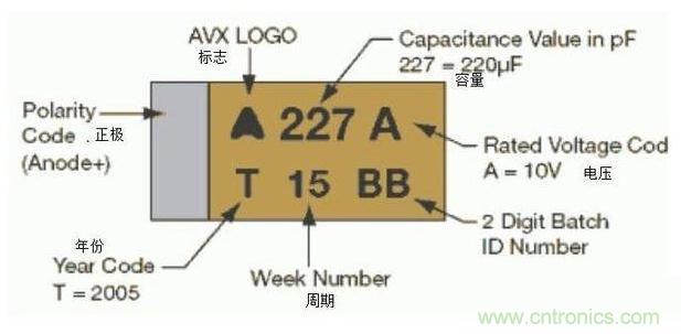 但是如果是貼片的鉭電容或電解電容,會在表麵有字母或數值標識。