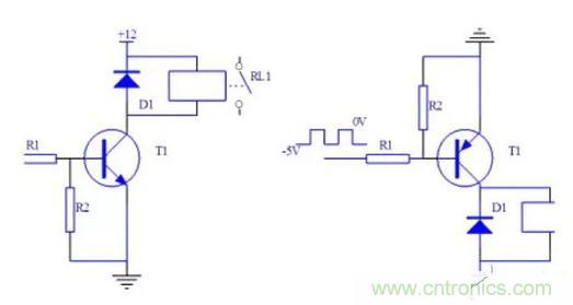 當晶體管用來驅動繼電器時,必須將晶體管的發射極接地。具體電路如下: