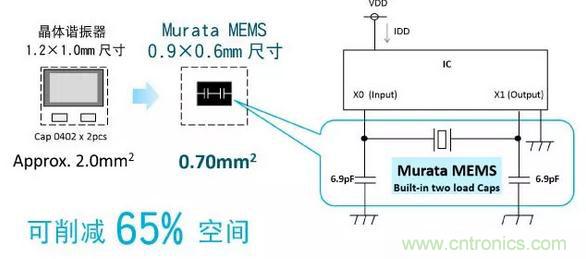 本產品是內置了在振蕩電路中所需的負載電容量的超小型芯片尺寸封裝(CSP)。因此,可節省整體振蕩電路的空間,為最終的小型化做貢獻。此外,也可在空出來的空間中追加大電流或者其他功能。
