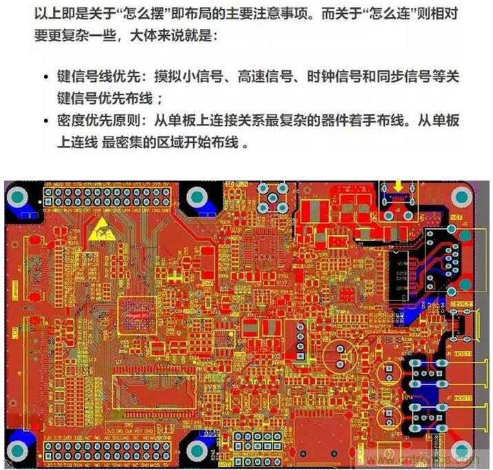 1、遵照“先大後小,先難後易”的布置原則,即重要的單元電路、核心元器件應當優先布局。這個和吃自助餐的道理是一樣的:自助餐胃口有限先挑喜歡的吃,PCB空間有限先挑重要的擺。