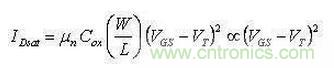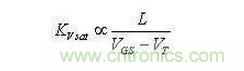 因為MOSFET的電壓增益是在源-漏電流一定的情況下、輸出電壓VDS對柵-源電壓VGS的微分,則飽和狀態的電壓增益Kvsat將要求器件具有較小的飽和電壓(VGS-VT):