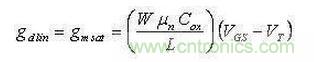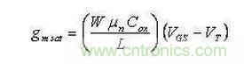 ②在飽和電流IDsat一定時:飽和跨導gmsat卻與飽和電壓(VGS-VT)成反比: