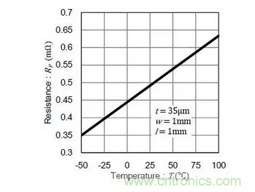 因此,當3A電流在25°C時流通PCB表麵上銅時,電壓降約24.5mV。然而,溫度上升至100℃時,電阻值增加29%,電壓降變為31.6mV。