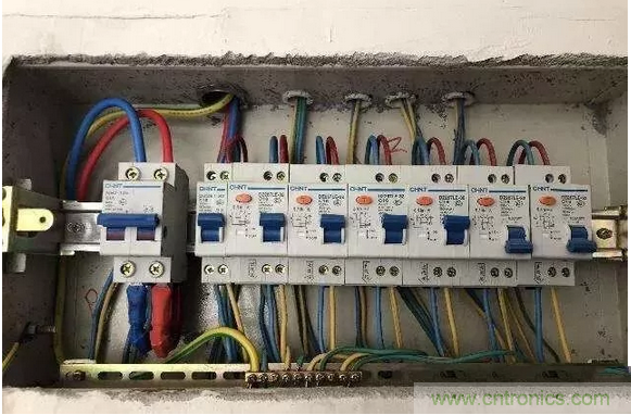 空氣開關作為總開關安裝在最前麵,後麵除了照明回路都使用漏電開關的安裝方式優點很明顯:首先某個回路漏電時隻是這個回路跳閘,不會跳總閘,不影響我們使用;其次由於它每次都是跳的相應的分開關,所以很容易找到哪個回路的電路出現故障,故障排查方便;最後它也不會誤動作;
