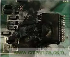 下圖就是由於反向電流通過元器件,導致電路板上的元器件燒毀。