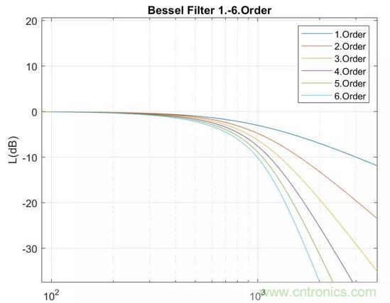 同Butterworth濾波器一樣,其階數越高,阻帶衰減也就越快,但是從通帶的幅值響應看來,其保留通帶部分的能力沒有Butterworth濾波器出色。Bessel濾波器具有最平坦的幅度和相位響應。帶通的相位響應近乎呈線性。Bessel濾波器可用於減少所有IIR濾波器固有的非線性相位失真。Bessel線xian性xing相xiang位wei濾lv波bo器qi正zheng是shi由you於yu具ju有you向xiang其qi截jie止zhi頻pin率lv以yi下xia的de所suo有you頻pin率lv提ti供gong等deng量liang延yan時shi的de特te性xing,才cai被bei用yong於yu音yin頻pin設she備bei中zhong。在zai音yin頻pin設she備bei中zhong,必bi須xu在zai不bu損sun害hai頻pin帶dai內nei多duo信xin號hao的de相xiang位wei關guan係xi前qian提ti下xia,消xiao除chu帶dai外wai噪zao聲sheng。