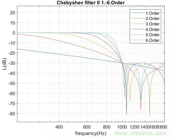 該濾波器根據俄羅斯數學家PafnutyChebyshev來lai命ming名ming的de,因yin為wei設she計ji該gai濾lv波bo器qi所suo使shi用yong的de數shu學xue模mo型xing正zheng是shi基ji於yu切qie比bi雪xue夫fu多duo項xiang式shi。該gai濾lv波bo器qi的de特te點dian是shi過guo渡du帶dai衰shuai減jian快kuai,和he理li想xiang濾lv波bo器qi之zhi間jian的de誤wu差cha最zui小xiao,但dan是shi在zai通tong帶dai(Type I)或者阻帶(Type II)存在幅度波動。