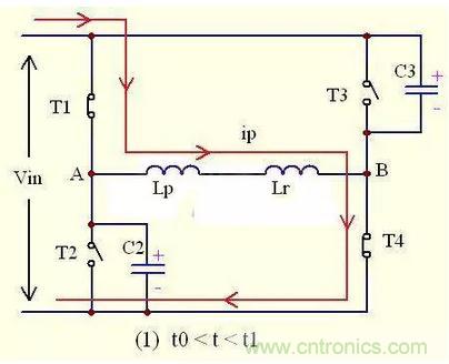 T1,T2稱為超前臂開關管,T3,T4稱為滯後臂開關管