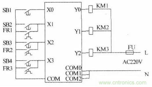 繼電器電路圖中的交流接觸器和電磁閥等執行機構用PLC的輸出繼電器來控製,它們的線圈接在PLC的輸出端。按鈕、控製開關、限位開關、接近開關等用來給PLC提供控製命令和反饋信號,它們的觸點接在PLC的輸入端。