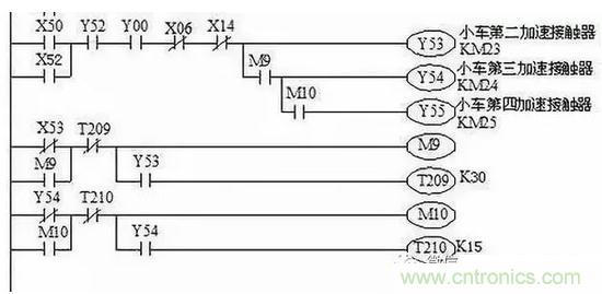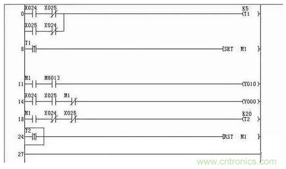 在梯形圖和指令語句表中,很容易找到該輸出繼電器的線圈電路及其得電、失電條件,但引起該線圈的得電、失電及其相關電路就不容易找到,可采用逆讀溯源法去尋找: