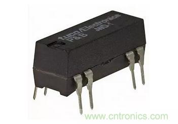 舉例來說,TE Connectivity的JWD-171-10磁簧繼電器有一個集成吸收器二極管的24V線圈,以及一個常開觸頭,其在20V時的額定最大切換電流為500mA。JWD係列磁簧繼電器設計安裝在電路板上,基底麵與14引腳DIP集成電路相同,不過隻有8個引腳(圖1)。