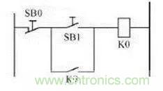 I/O分配SB0-X0,SB1-X1,輸出K0-Y0。當外部使用長閉觸點,不操作該按鈕,輸出Y0正常接通,在PLC控製係統中,外部開關無論是啟動還是停止一般都選用常開型。