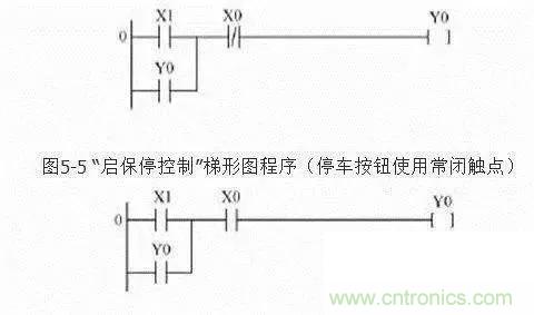輸入端的電氣原理圖中停止按鈕SB0用常閉觸點,串在控製線中,用於停機控製。 啟動按鈕SB1用常開觸點。在設計的兩個梯形圖完成的控製功能相同,但停機信號X0使用的觸點類型不同,那麼連接在端點的外部停機按鈕觸點類型也就不同