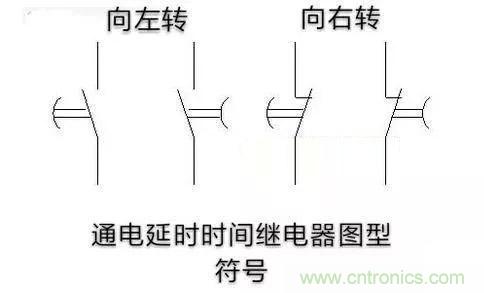 通電延時時間繼電器的觸點看圓弧,圓弧向圓心方向移動,帶動觸點延時動作。再看斷電延時時間繼電器的觸點的圖形符號:
