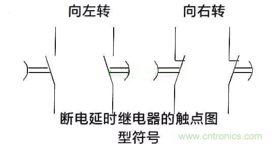斷電延時時間繼電器的觸點也是看圓弧,通電後觸點動作。斷電後,圓弧向圓心方向移動,帶動觸點延時複位。