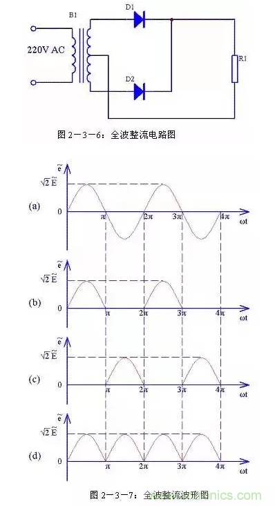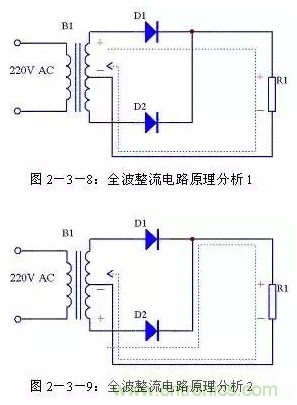 全波整流電路每個整流二極管上流過的電流隻是負載電流的一半,比半波整流小一倍。