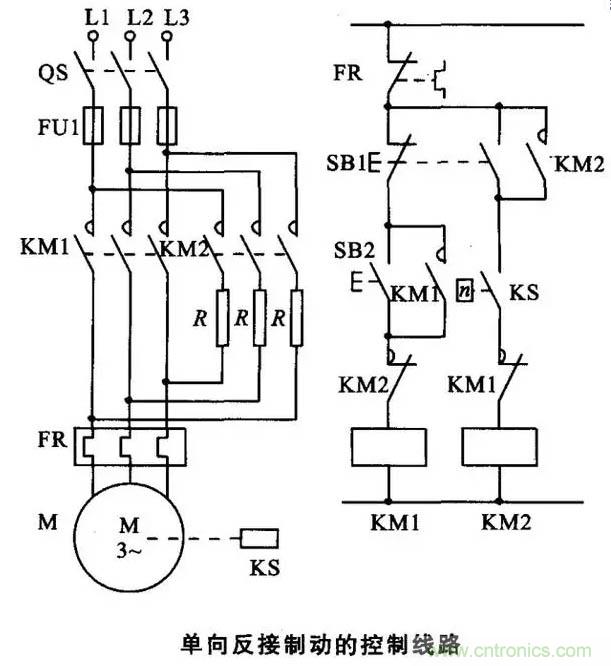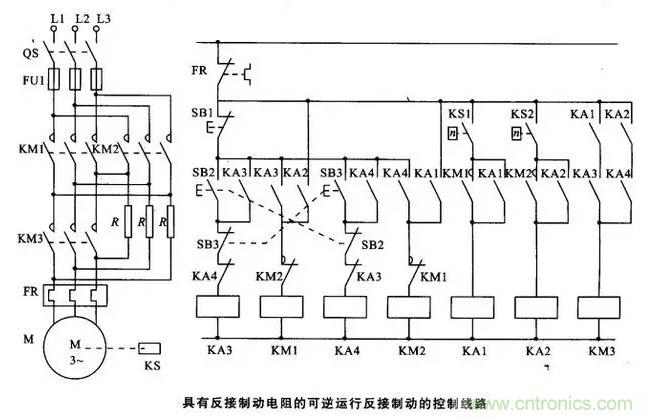 19. 具有反接製動電阻的可逆運行反接製動的控製線路