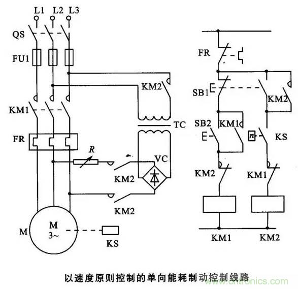 21. 以速度原則控製的單向能耗製動控製線路