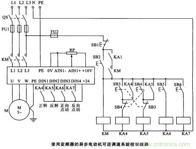 25. 使用變頻器的異步電動機可逆調速係統控製線路