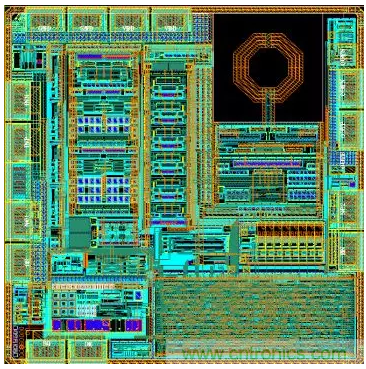 射頻無線模塊或者獨立的射頻芯片,從電路設計到版圖設計,完全屬於全定製設計方式。設計人員在標準版圖設計和半定製版圖設計的基礎上,不斷開發出專用的芯片射頻產品。圖6為某射頻公司自行設計的5GHz通信產品全定製版圖案例,即版圖為全手工設計,芯片製造采用180nm射頻工藝,其數據率達到5Gbps。