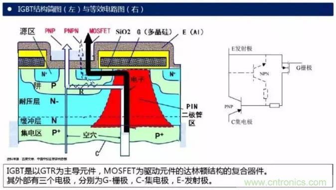 IGBT是以GTR為主導元件,MOSFET為驅動元件的達林頓結構的複合器件。其外部有三個電極,分別為G-柵極,C-集電極,E-發射極。