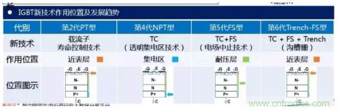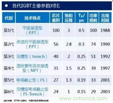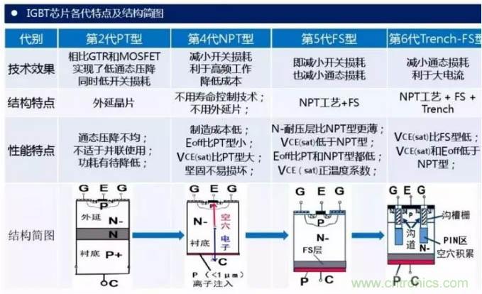 1985年前後美國GE成功試製工業樣品(可惜後來放棄)。自此以後, IGBT主要經曆了6代技術及工藝改進。
