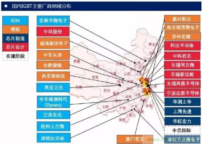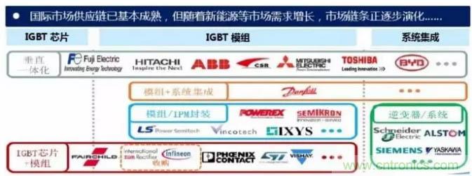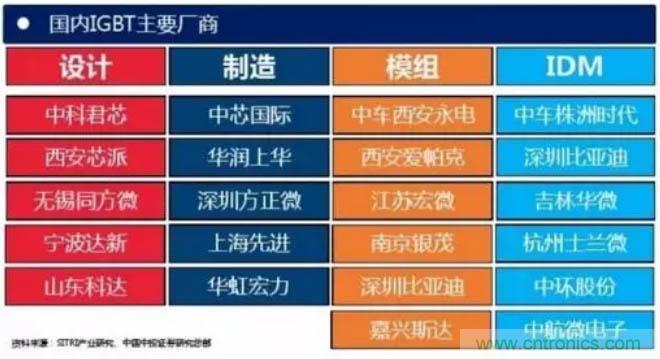 從公司來看,國外研發IGBT器件的公司主要有英飛淩、 ABB、三菱、西門康、東芝、富士等。中國功率半導體市場占世界市場的50%以上,但在中高端MOSFET及IGBT主流器件市場上,90%主要依賴進口,基本被國外歐美、日本企業壟斷。