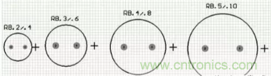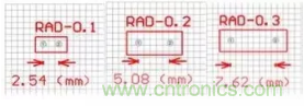 電解電容對應的元器件封裝為RB係列,如“RB.1/.2”到“RB.5/1.0”,其中“.1/.2”分別指電容的焊盤間距和外形尺寸。