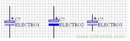 常用的原理圖符號為CAP,對應的電容封裝為RAD係列,如“RAD-0.1”到“RAD-0.4”,其中0.1和0.4指電容大小,一般用“RAD0.2”。