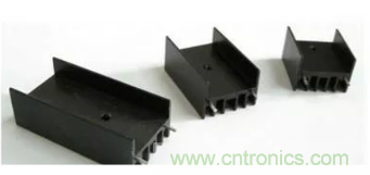 在(zai)實(shi)際(ji)使(shi)用(yong)過(guo)程(cheng)中(zhong),用(yong)戶(hu)常(chang)常(chang)在(zai)穩(wen)壓(ya)源(yuan)上(shang)附(fu)加(jia)散(san)熱(re)片(pian),以(yi)避(bi)免(mian)穩(wen)壓(ya)源(yuan)長(chang)時(shi)間(jian)工(gong)作(zuo)在(zai)大(da)負(fu)載(zai)下(xia),散(san)熱(re)條(tiao)件(jian)不(bu)足(zu),從(cong)而(er)造(zao)成(cheng)過(guo)高(gao)的(de)溫(wen)升(sheng)而(er)損(sun)壞(huai)元(yuan)器(qi)件(jian)和(he)電(dian)路(lu)板(ban),圖(tu)F1-17所示為常用的散熱片。