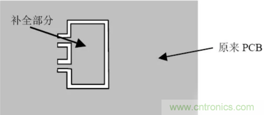 不規則形狀且沒拚板的PCB 應加工藝邊。若PCB 上有開孔大於等於5mm×5mm的地方,在設計時要先將孔補全,以避免焊接時造成漫錫和板變形,補全部分和原有的PCB 部分要以單邊幾點連接,在波峰焊後將之去掉(見圖3.2)