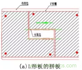 異形板的拚板,要注意子板與子板間的連接,盡量使每一步分離的連接處處在一條線上,見圖3.5所示。