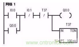 3.延時啟停控製電路該電路要求有輸入信號後,停一段時間輸出信號才為ON;而輸入信號0FF後,輸出信號延時一段時間才OFF。T37延時3 s作為Q0.0的啟動條件,T38延時5 s作為Q0.0的關斷條件。