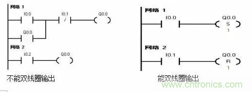 (2)梯形圖中同一編號的“繼電器線圈”隻能出現一次,通常不能出現,但是它的觸點可以無限次地重複使用。