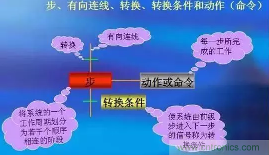 在控製係統的一個工作周期中,各依次順序相連的工作階段,稱為步或工步,用矩形框和文字(或數字)表示。步有兩種狀態:“活動步、“非活動步” 、“初始步”:一係列活動步決定控製過程的狀態。對應控製過程開始階段的步,每一個功能表圖至少有一個初始步,初始步用雙線矩形框表示。
