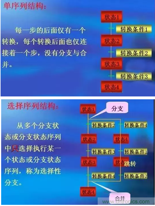 功能表圖的基本結構:單序列結構、選擇序列結構、合並序列結構