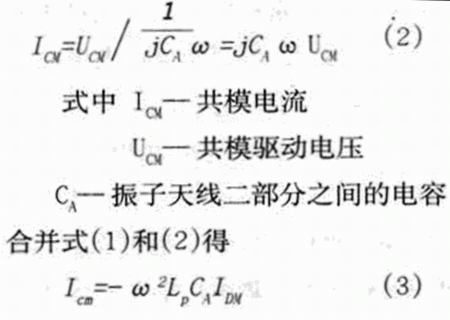 共模天線的一個極必定是設備的外部連接線,另一個極可以是設備內部印刷板的地線、電源麵、機殼、散熱片、金屬支撐架等等。當天線二個極的總長度大於λ/20後,天線的輻射才有可能有效。當天線長度與驅動源諧波的波長符合下式時天線發生諧振,輻射能量最大。