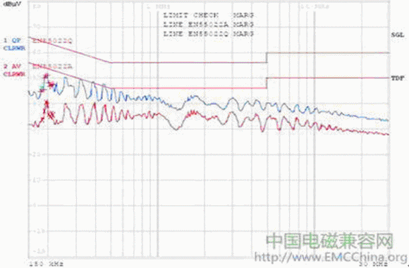 圖3 在230 VAC最差情況下符合EN55022A標準