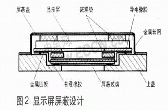 屏ping蔽bi玻bo璃li安an裝zhuang完wan畢bi,待dai粘zhan膠jiao涼liang幹gan後hou再zai裝zhuang顯xian示shi屏ping。為wei了le防fang止zhi終zhong端duan內nei部bu電dian路lu的de幹gan擾rao,最zui後hou用yong屏ping蔽bi蓋gai把ba顯xian示shi屏ping包bao圍wei起qi來lai。顯xian示shi屏ping的de屏ping蔽bi結jie構gou如ru圖tu2所示。
