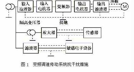 所suo謂wei幹gan擾rao的de隔ge離li是shi指zhi從cong電dian路lu上shang把ba幹gan擾rao源yuan和he易yi受shou幹gan擾rao的de部bu分fen隔ge離li開kai來lai,使shi它ta們men不bu發fa生sheng電dian的de聯lian係xi。在zai變bian頻pin調tiao速su傳chuan動dong係xi統tong中zhong,通tong常chang是shi在zai電dian源yuan和he放fang大da器qi電dian路lu之zhi間jian的de電dian源yuan線xian上shang采cai用yong隔ge離li變bian壓ya器qi以yi免mian傳chuan導dao幹gan擾rao,電dian源yuan隔ge離li變bian壓ya器qi可ke應ying用yong噪zao聲sheng隔ge離li變bian壓ya器qi。